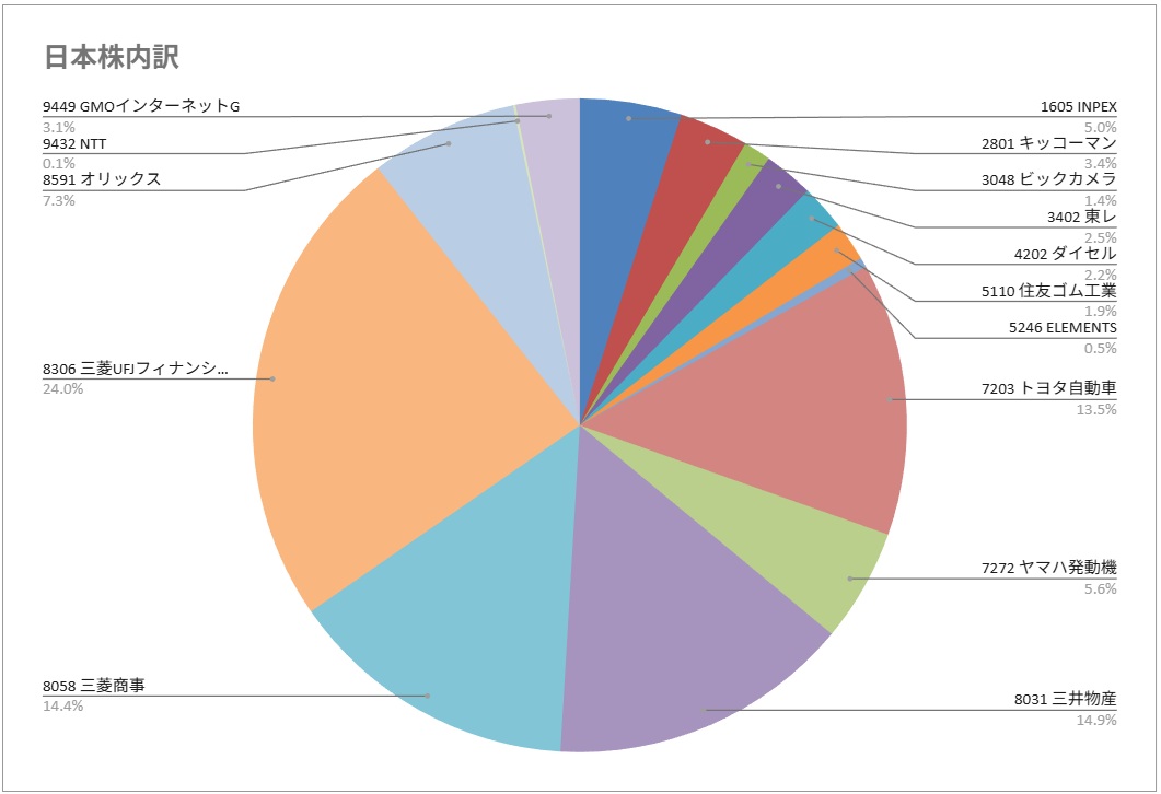 日本株は、個別株で、輸送機器・商社・銀行あたりの大型高配当株をメインに保有中です。