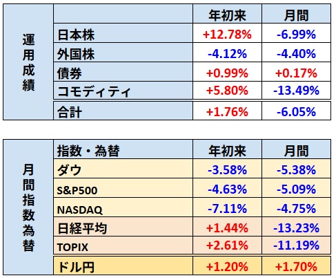 資産運用結果や資産構成に関する記事を中心に掲載しています。