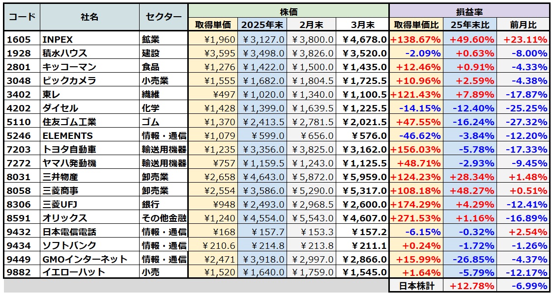 2026年3月の資産運用結果【11ヶ月ぶりに大幅下落も年初来は辛うじてプラスを維持】