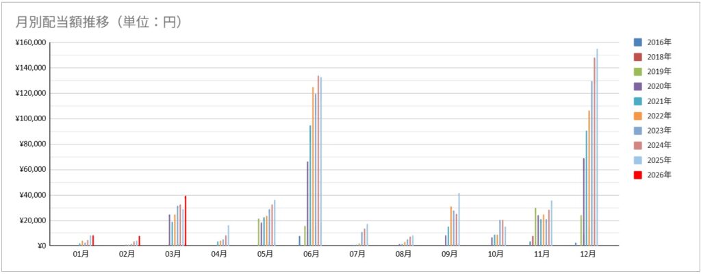 2月の配当入金額は。¥39,270でした(前年比135%)。3月配当の前年比が上がったのは今年からINPEXの配当が入るようになった影響が大きいですね。