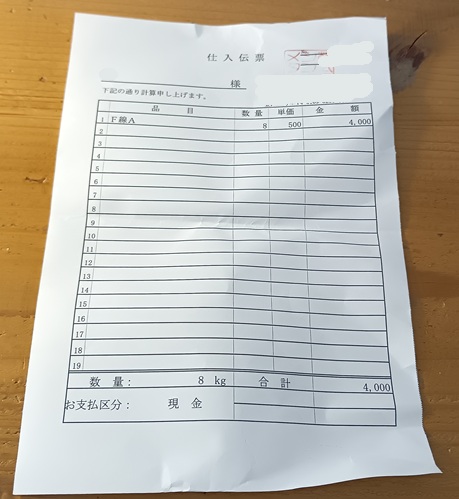 銅線は自宅で軽量した時8.1kgありましたが、買取業者で軽量した時は100g単位は切り捨てられて8kgとなりました。結果4千円!(1kgあたり500円)で買い取ってもらえました。